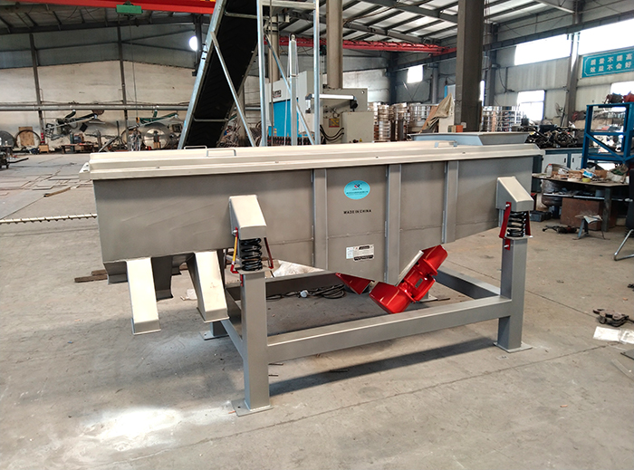 直線振動篩通常由振動器、篩網、篩箱、底座、彈簧支撐等組成。振動器提供振動力,驅動篩箱進行振動運動。篩箱內放置篩網,根據需要選擇不同規格的篩網。底座支撐整個設備,彈簧支撐系統用于減震和支撐。通過振動器產生的振動力,物料在篩網上進行篩分,實現顆粒物料的分級和篩分工作。這種結構設計使得直線振動篩具有高效、可靠的篩分性能。