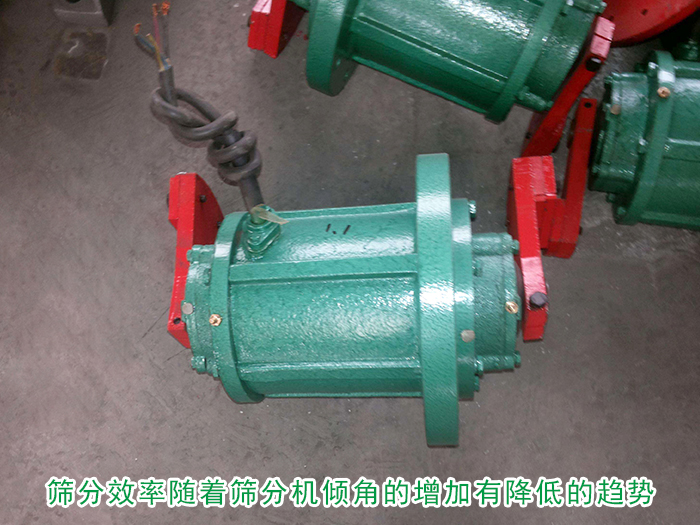 當振動電機的工作轉(zhuǎn)速固定在500r/min時,在相對增高線速度的錘頭撞擊下,使得破碎并使之均勻化,排料粒度相對小一些,較有利于下道篩分工序。篩分機在傾角較小的工況下,篩分效率都較高。但隨著篩機轉(zhuǎn)速的增高,傾角的增大,部分物料在篩機體內(nèi)開始做離心運動,反而不利于篩分作業(yè),篩分效率迅速降低。
