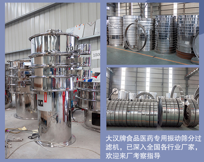 大漢牌食品醫(yī)藥用振動(dòng)篩有DH-600型、DH-800型、DH-1000型、DH-1200型、DH-1500型,該機(jī)種有以下特點(diǎn):