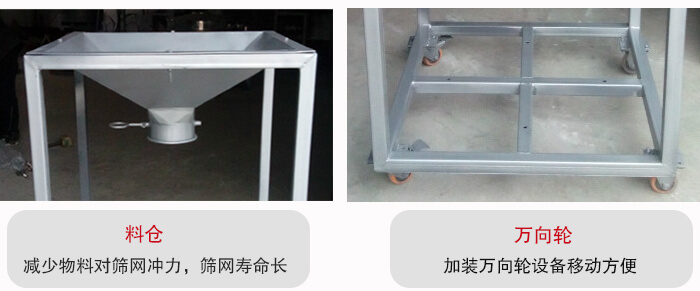 移動式振動篩又叫振動篩料倉一體機,底部加裝萬向輪,可360度旋轉移動,主要應用于篩分場所不固定的環境,便于用戶移動,滿足不同地點的工作需要。通過調節料倉中的蝶閥從而控制物料進入振動篩的流量,然后振動篩進行篩分作業,本品的特點間歇性加料,不用工人不間斷投料節省人工,蝶閥控制流量大小能提高篩分精度。