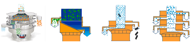 應用 | 要用于物料原料的篩分和成品的最終生產檢驗,可以去除產品中的結塊和污染物,一次操作最多可提供5級分級。 | 適合高粘性、高靜電細粉,篩分精度可以提高80%以上,產量提高2-5倍。 | 模擬人工篩分的動作,產生了水平和投擲的三維滾動運動,適用于500目以內的細粒狀物料,篩分精度提高了90-95%,產量是圓形振動篩的5-10倍。 | 適合一般的粗略篩分或除雜,的進、出料口設計在同一垂直方向上,這樣會加快物料的排料速度,處理量是普通圓形振動篩的2-5倍。 | 經常用在液體過濾行業,可去除液體或懸浮物中存在的不需要的顆粒,當然也是可以作為粉末除雜。可用在處理量較小的工廠或小型作坊。 |